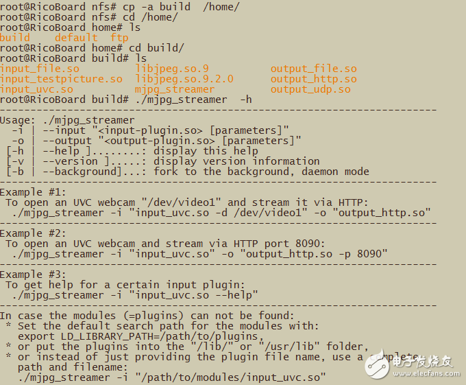 mjpg_streamer需要的文件全部copy到/home文件夹下面