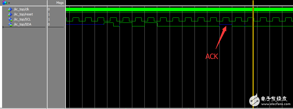 我知道,这是仿真的时序,我没有给ACK。就是将能生成这个时序的程序烧进去之后,操作IIC,没有应答的。
