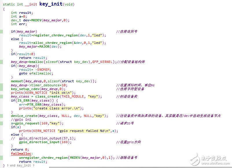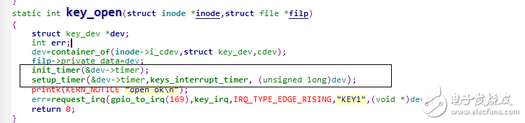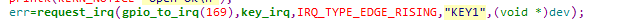 设置驱动在我们的操作中其实就是请求IO,设置IO为输入,然后请求中断号,前两步在GPIO一节中我们已经讲过,这里不再赘述。讲重点,中断号申请