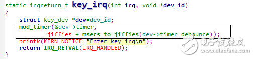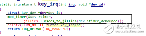 每次中断来的时候都会重新设置定时器的值,每到msecs_to_jiffies(dev->timer_debounce)指定的时间到了就会执行回到函数