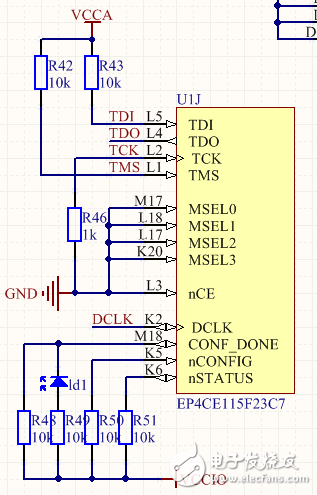 画了一个板子,配置电路如图,VCCA是2.5V,VCCIO是3.3V,手册上说 MSEL全部接地那就只能用JTAG下载,但是现在JTAG下载没反应,quartus里面说连不上JTAG,请问是什么原因,我图连的有没有问题?。另外,MSEL全接地那我每次上电都需要下程序才可以?掉电程序就没了?有咩有其他方法啊?