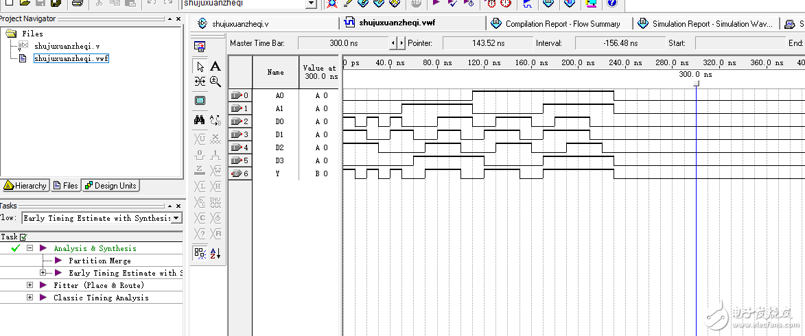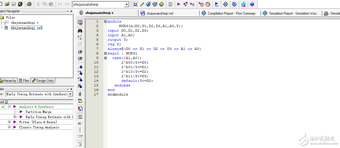 QuartusII中四选一选择器波形仿真问题