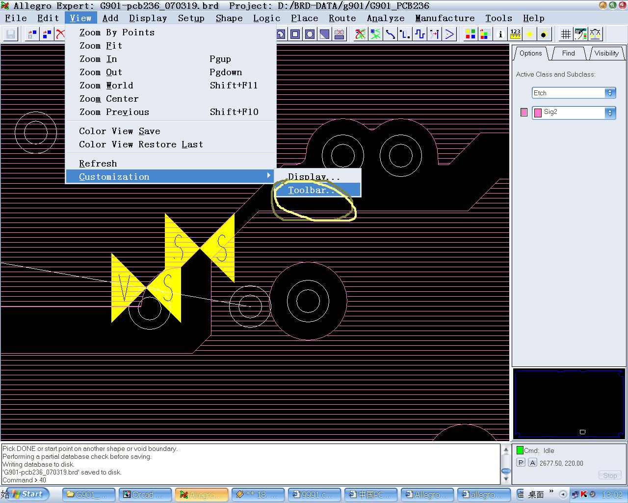 allegro里怎么样把菜单里的一些常用操作的图标放到工具栏上?每次去菜单里找不大方便,也不想设快捷键。