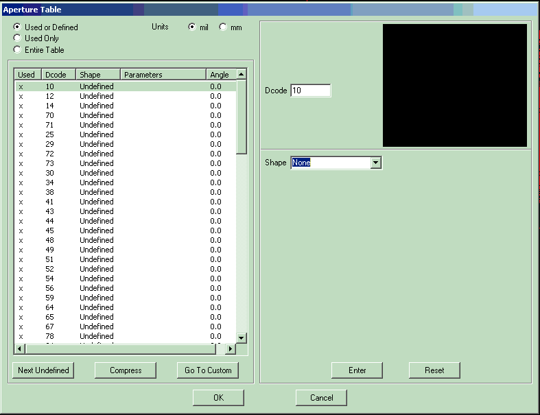 我有做apertures那一步呀,但不知为什么,我cam350导入时出现下列情形,出的gerber全部是细线,而且看不到through hole!