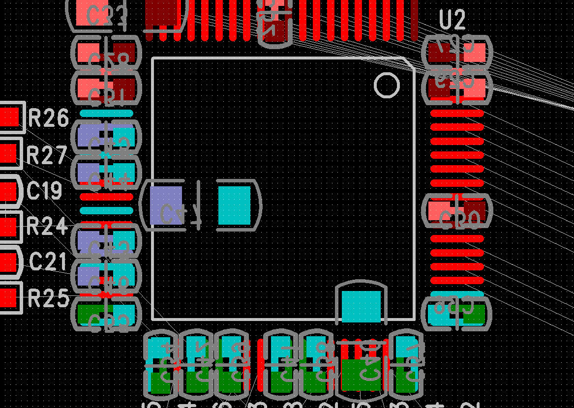其他的都是0.1uf的电容,每个在就近的对应管脚处