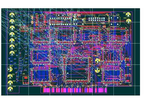 依上图,你可以发现布线密度最大的是你pci控制器上方的区域,我看了一下,主要是16位数据线和地址线。只是在自动布线中,由于布局的问题,出现了大量冗余地走线。你觉得该做何调整?