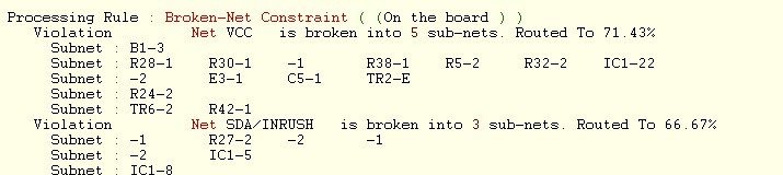 我在手动布线之后用DRE检查,上面出现很多violation,但不知道该怎么看,出现错误的会在PCB图上面显示吗?没有连接好的网络会有什么标示吗?