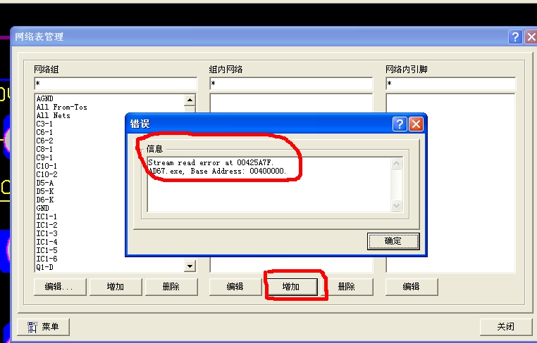 我下的AD6.7怎么直接手动添加网络老是添加不了,出这个提示.有知道这是什么问题的吗?先谢谢了!