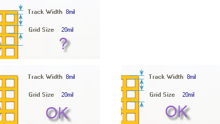 栅格尺寸是相邻两导线中心线之间的距离,如果用当前的图描述的话,箭头都在在线的上边沿,或都在下边沿。