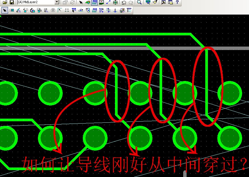 如何让导线从精确的从pad与pad的中间穿过?如图所示。谢谢!