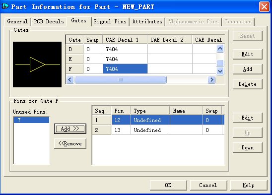 1.我从第一个非门开始给管脚编序号,中间跳过7号,最后一个非门是12、13号,然后回到那个编辑电气性能的表格中看,没有用到的管脚只有7号,没有14号,这样我使用这个元件时不就少了1个脚吗?请问怎样才能让14号脚显示出来?