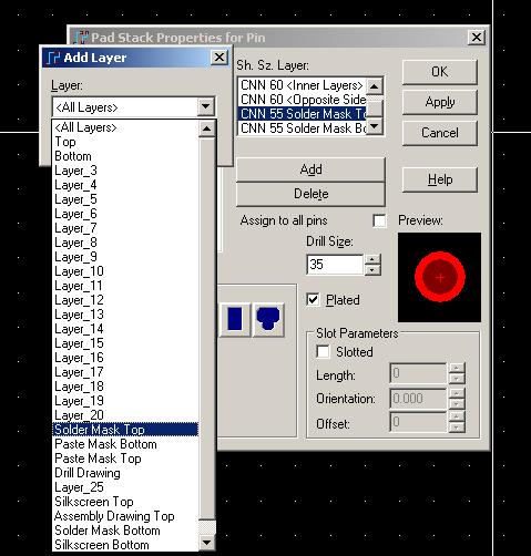 请教高手owerPCB如何使绿油覆盖焊盘,象protel中就有焊盘设置高级选项中的tenting?