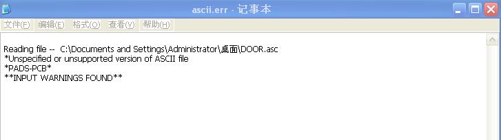 OK,现在已经生成了网表,然后打开pads layout 2007,点击file-import,导入网表文件,这时候问题出现了,弹出ascii.err,具体内容如下图: