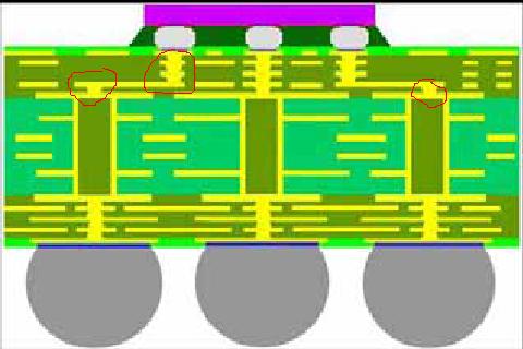 build up 的焊盘不都是叠在一起的,只要需要就可以在某个(外层)的焊盘与其相邻的层的焊盘build