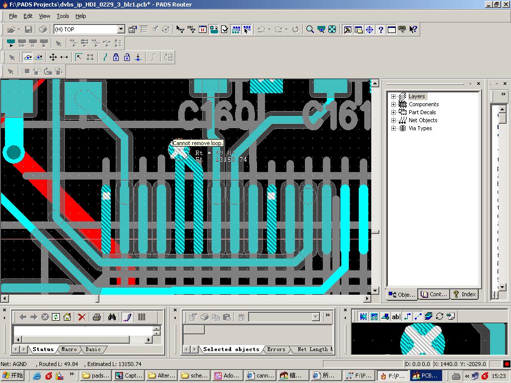 在pads2005 router中,直接打孔到平面层,当想共用过孔时,老是提示can't remove loop,导致连不到这个过孔上。见图。谢谢。
