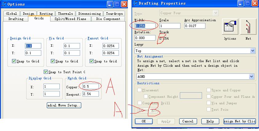 COPPER 的 GRID 设置值要大于铜皮的外框,是什么意思?我现在是把grid改大了,flood的时候是网格,但是自己画的铜皮还是实心的,不是网格!