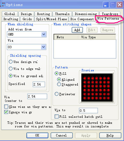 PADS2007中的Via Patterns功能怎样在设计中使用,