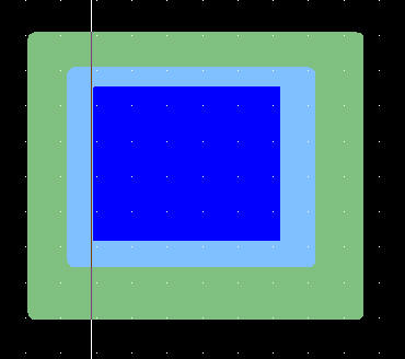 上面的图片:粉色区域与兰色区域大小是相等的,而粉色区域(即线宽)则表现为没有绿油的部分,最后的结果是铜板做出来后,加上一层绿油时,粉色部分不加,。结果就成的祼铜,还不明白我就没招啦!