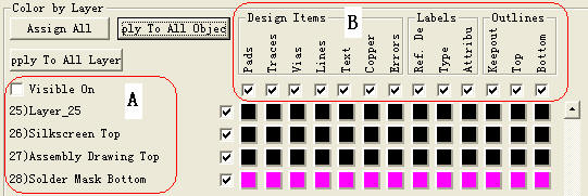 呵呵,我的理解就是B区的对象(线、铜皮、文字。)只是A区的的某一部分而已,也就是说不管B区的是什么对象(线、铜皮、文字。)只要是附属在A区,其最重要的属性则附属在A区里,如我在上面所说,只要对象(线、铜皮、文字。)放在了solder mask层里,最后的表现就是祼铜,文字就祼出文字的模样,用线画成什么就是祼出什么模样!如果还有认为有不同的看法的我不强求一定要按我的意思来做。