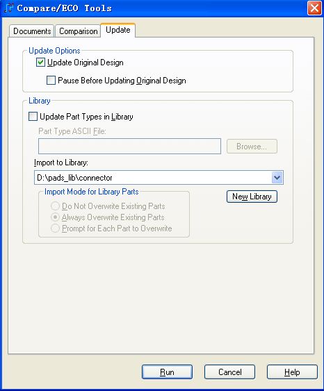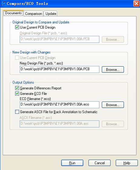 在pads 中将其导入,另存为*.PCB .打开旧PCB 文件,点击Tools---Compare/Eco...按如下示例进行设置,比对之后会产生*.ECO 文件,可按图2 ,打勾UPDATE ,直接UPDATE.