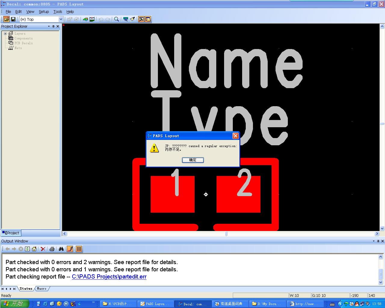 PADS2007 在PCB封装器中打开封装,出错!