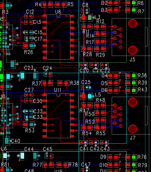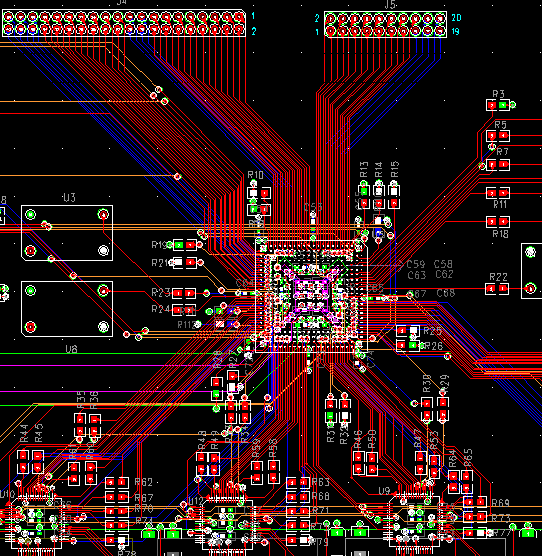 这板子是六层板,俺花了一个月才完成的。从一点都不懂到布完成这么多线的板子,自己都觉得不可思议~``呵呵