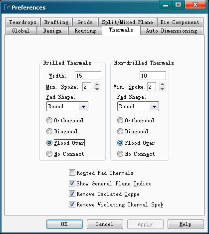 2、Routed Pad Thermals要勾上,其它shape也要选flood over