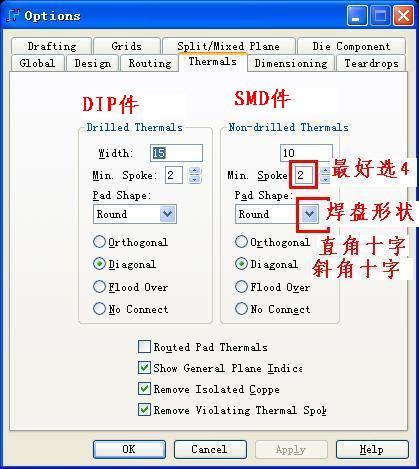在pads中,怎么样做到,插件的引脚和地的连接形式为十字形的连接,而过孔的连接形式却是封闭式的连接?在哪里设置,非常谢谢……