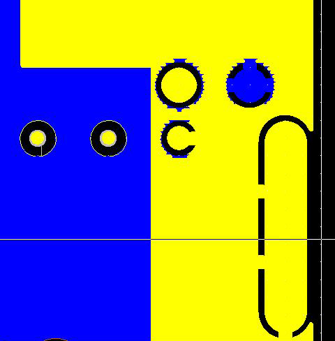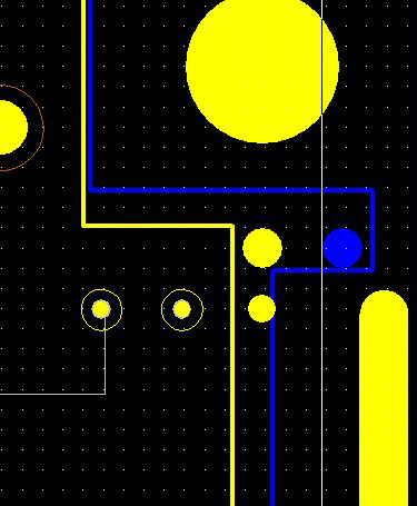 黄色和蓝色的铜皮是分在内层的两个不同的地网络,他们的shap是交错的如图二,以前我铺的时候他们都会自动避让开的如图四,可是现在我要达到如图一(或图三)的效果,可是我怎么设置也不行,即使设置了铺铜的优先级,他们还是会自动避让开如图四,请教大侠们,知道怎么才能达到这个效果吗?