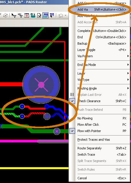我在Router中走线时,怎么由top层打上过孔后继续走到bottom层?