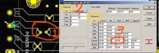 另外有一个笨法,把标示3处值设小,再用CUT?OUT补充:把不同网络隔离距离按规则处理。但这样会发生事后没检查到或漏掉的错误发生。