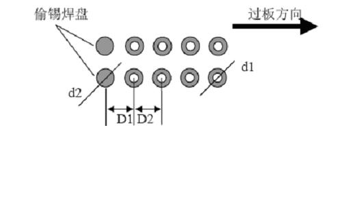 应该是在焊盘后面新加焊盘用于拖开前面的锡,以免波峰焊时候连锡的才是