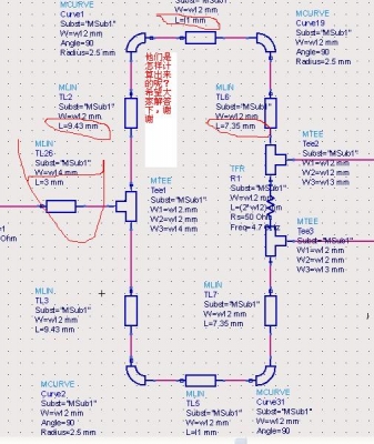 但是由于自己是刚刚学习的,不知道图中所示每段微带线的L=7.35 L=9.43 是什么来的,这里的每段微带线L长度是可以随便定的吗?该怎样算出他的值呢?有公式不?希望大家解答!谢谢!