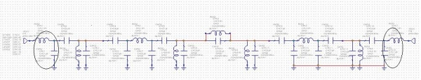本人刚刚入手学习LC滤波器,前几天在微网上看到这样一个带通滤波器模型,不明白电路前段(圈中部分)的串联电感和并地的电容起的是什么作用,希望高手能够指点一下。