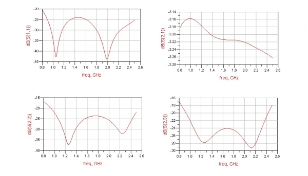 至于功分器指标嘛,两级微带线估计会比较难达到,建议用三级吧。