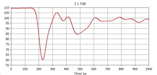 但是最終數據結果在母座端子&高頻板之間Throogh的特性阻抗會掉很低(如下圖)