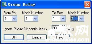 Group Delay 及Q 值计算对话框如下所示, 在Group Delay 对话框中选择输入、输出端口和端口模式后点击“OK”按钮即可获得该端口模式激励下天线的Q 值。