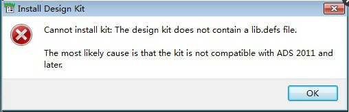 我用的EMPro软件设计好了一个机壳,生成了一个design kit,为什么导入到ADS中总提示安装design kit无lib.defs文件?