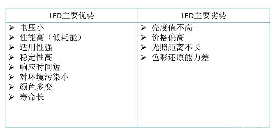 LED产业应用领域LED照明灯具里,底灯,吊灯,投射灯等装饰用,反射用途的LED照明灯具可以完全胜任于任何场合,包括美术馆,博物馆等对颜色度要求较高的场所。但是对于商场,写字楼等大规模设施来说,作为大范围照明的LED灯具虽然已经诞生,但是其指向性(LED芯片发出的光是直线,发散性不好)太高,造成大面积内设计平均的照度很困难。灯管型LED照明灯具排列过密,设计成本过高,失去节能效果。因此,现阶段装饰用途场合,LED照明灯具完全可用,大面积室内照明还不成熟。1)信号指示应用:信号照明是LED单色光应用比较广泛也是比较早的一个领域,约占LED应用市场的4%左右。2)显示应用 : 指示牌、广告牌、大屏幕显示等,LED用于显示屏幕的应用约占LED应用的20%—25%,显示屏幕可分为单色和彩色。3)照明应用:①便携灯具:手电筒、头灯、矿工灯、潜水灯等;②汽车用灯:高位刹车灯、刹车灯、转向灯、倒车灯等,大功率的LED已被大量用于汽车照明中。③特殊照明:太阳能庭院灯、太阳能路灯、水底灯等;由于LED尺寸小,便于动态的亮度和颜色控制,因此比较适合用于建筑照明。④背光照明:普通电子设备功能显示背光源、笔记本电脑背光源、大尺寸超大尺寸LCD显示器背光源等,LED作为手机显示的背光源是LED应用最广泛的领域。⑤投影光源:投影仪用RGB光源。⑥普通照明:各类通用照明灯具、照明光源等分为商业照明和家居照明。LED制造流程
