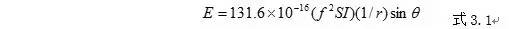 E――电场(V/m)f――频率( )S――面积( )I――电流(A)r――距离(m)――测量天线与辐射平面的夹角( )式3.1适用于放置在自由空间且表面无反射的小环,实际上我们的产品是在地面进行而非自由空间,附近地面的反射会使测得的辐射增加6dB,考虑到这一点,式3.1必须乘2,如果对地面反射加以修正并假设为最大辐射方向,则式3.1为