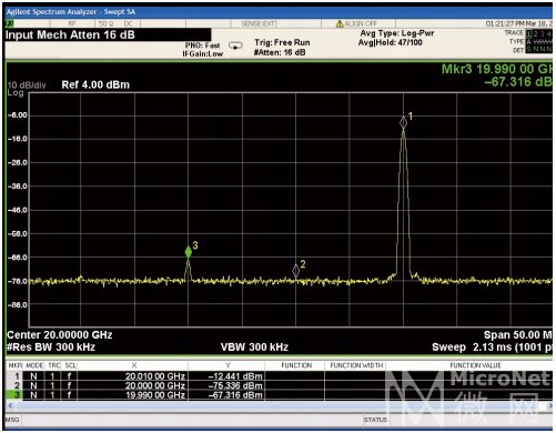图2. HMC773A无源混频器和HMC8191 I/Q混频器的频谱图,IF输入为1 GHz,LO输入为16 GHz.集成频率转换混频器由于客户需要更完整的信号链解决方案,还有一类混频器变得颇受欢迎,那就是集成频率转换器。此类器件由不同功能模块构成,这些模块连接在一起形成一个子系统,使得客户的最终系统设计更简单。此类器件在同一封装或芯片中集成不同模块,例如混频器、PLL(锁相环)、VCO(压控振荡器)、倍频器、增益模块、检波器等等。可将此类器件制作成SIP(系统化封装),即把多个裸片组装到同一封装中,或一个裸片包括所有设计模块。通过将多个器件集成到一个芯片或封装中,频率转换器可以给设计人员带来很大好处,比如:尺寸更小、器件更少、设计架构更简单,更重要的是,产品上市时间更快。