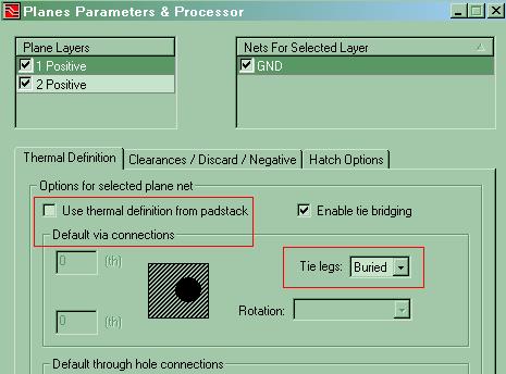 每次在GND plane上面加过孔,然后再process plane的时候过孔都被生成了热焊盘的形式。如果不想生成热焊盘的形式,即Via直接和plane相连,该如何设置?谢谢了。