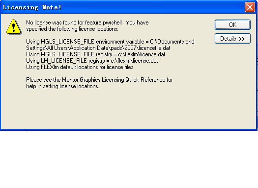求助,pads2007安装后打开显示没有license,如图.添加元件后就无法保存。请大侠们帮帮忙看是什么问题,装了n次了,郁闷中...