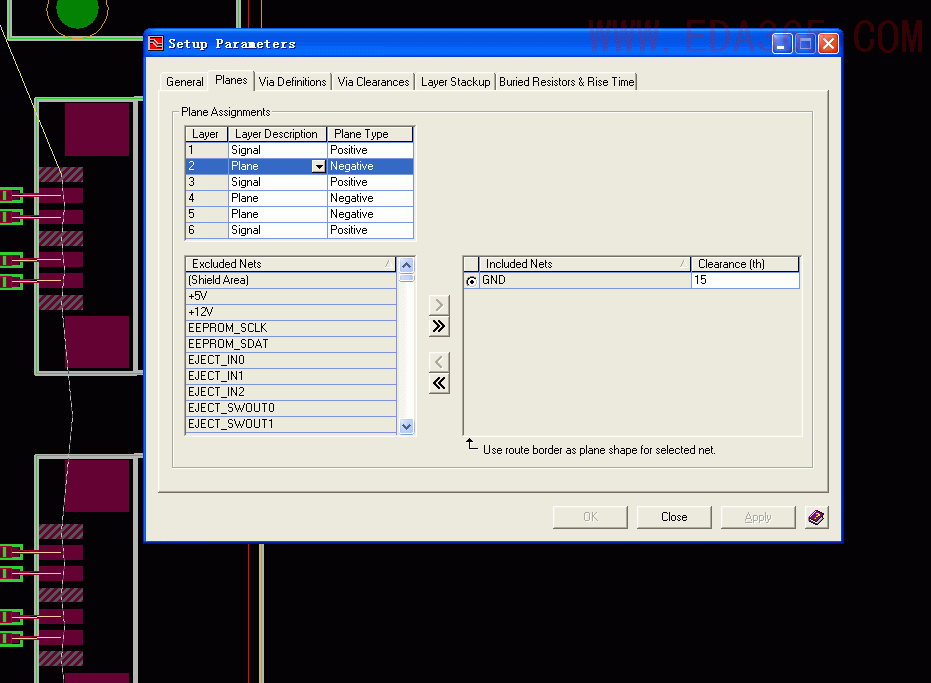 你在 setup>setup parameters>planes 设一个平面层,然后把电源网络加进去,那样就可以在焊盘上显示+字形状了!不知道是不是你想要的效果