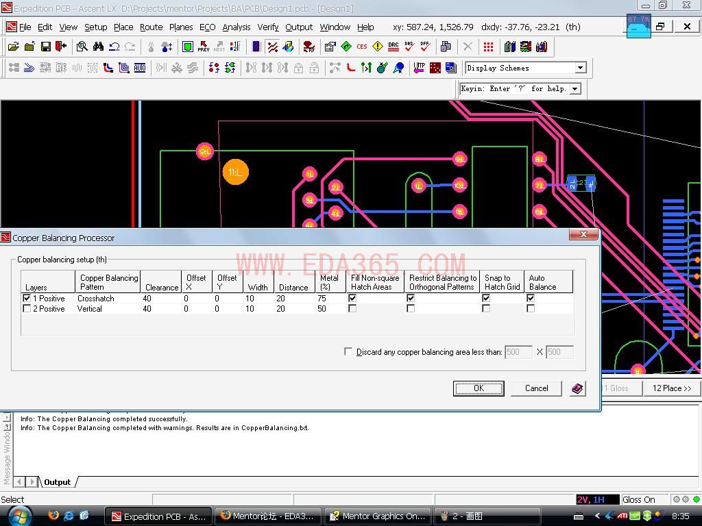 小编,操作方式用错了,cooper balancing 是用于铜皮工艺调整的。你应该在plane classes parameters设置铜皮的连接方式参数;用plane assigment 设置正负片,铜皮的动静态生成方式。由于在07版以后呢,正片铜皮只要画上plane shape 就立即生成动静态铜皮,负片得在generate