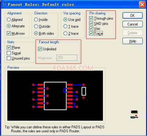 还有EE是否能设置扇出孔的长度,类似PADS的fanout length项?