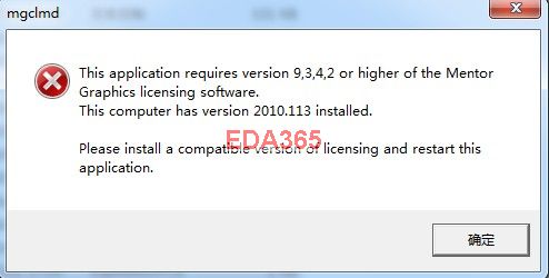 this application requires version 9,3,4,2 or higher of the mentor graphics licensing software