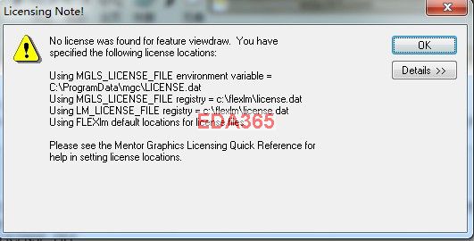 我把新生成的license放到flexlm了(在我放置license前是空的)。在设置环境变量的时候系统默认为C:\ProgramData\mgc\LICENSE.dat,提示错误,后来我改为如下: