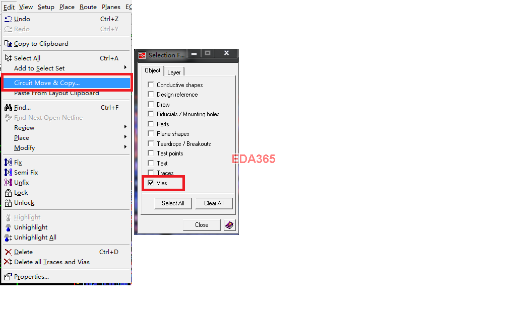 我想整版换VIA,edit/modify/padstack processing/pad stack change, 一个个点中换可以的。