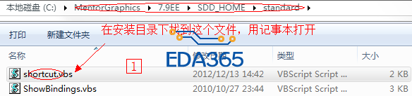 2.C:\mgc\EE7.9.3\7.9.3EE\SDD_HOME\standard\automation\startup文件夹下没有shortcut.vbs文件,将同类型的文件复制一下,文件名改成shortcut.vbs,同样用记事本打开,将内容改成